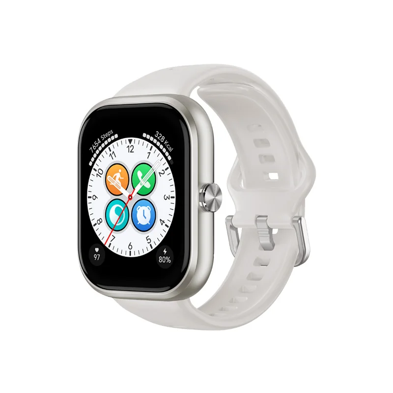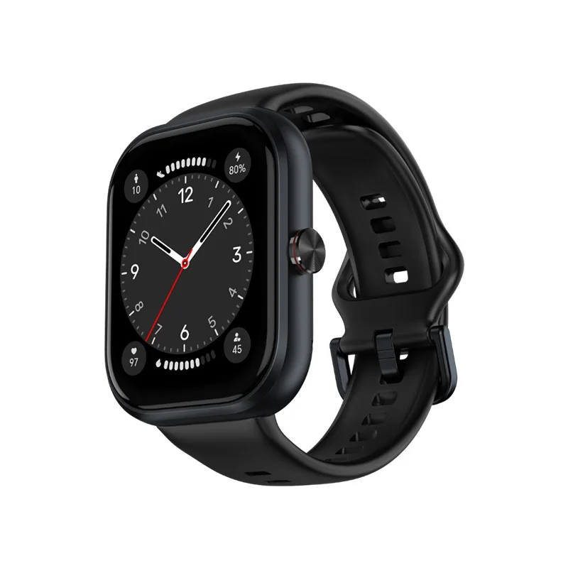 - Pantalla y Diseño: Posee una gran pantalla AMOLED de 1.95 pulgadas con una alta resolución de 410 x 502 píxeles y una tasa de refresco de 60 Hz. Esto se traduce en colores vibrantes, negros profundos y una excelente visibilidad incluso bajo la luz solar directa. Su diseño es elegante, con una textura metálica y un formato cuadrado que recuerda a otros relojes de alta gama. Además, tiene una resistencia al agua de 5ATM, lo que lo hace ideal para nadar y surfear.